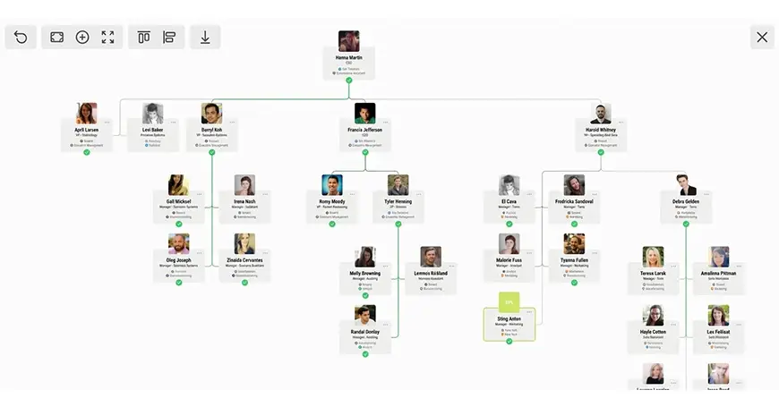 Org chart tools are systems that automatically build and maintain reporting structures using employee data. They allow users to explore teams, search for individuals, understand relationships, and support planning initiatives without relying on manually updated diagrams.