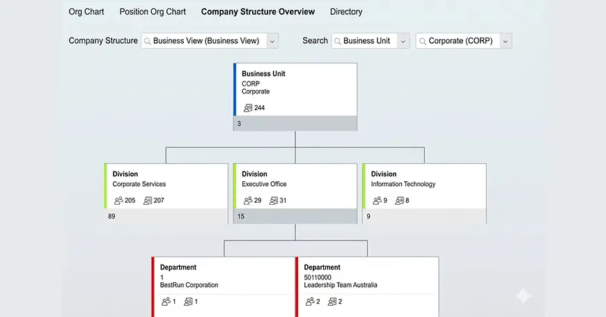 Ideal for: SAP-driven enterprises seeking integrated HR and reporting structures.