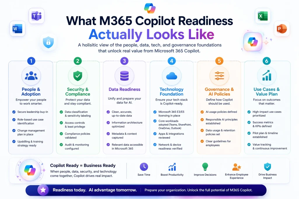The single biggest mindset shift here: M365 Copilot readiness is 80% about your environment and 20% about the technology. The technology works. Your environment might not be ready for it.