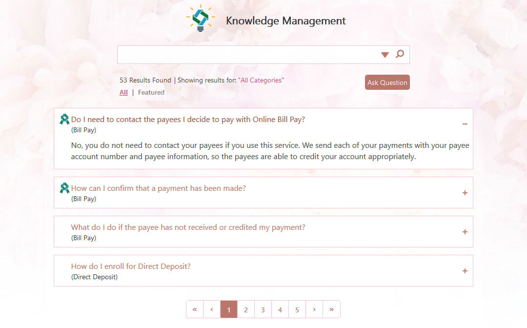 Within the knowledge management software, specific content can be marked as featured. This draws attention to key info.